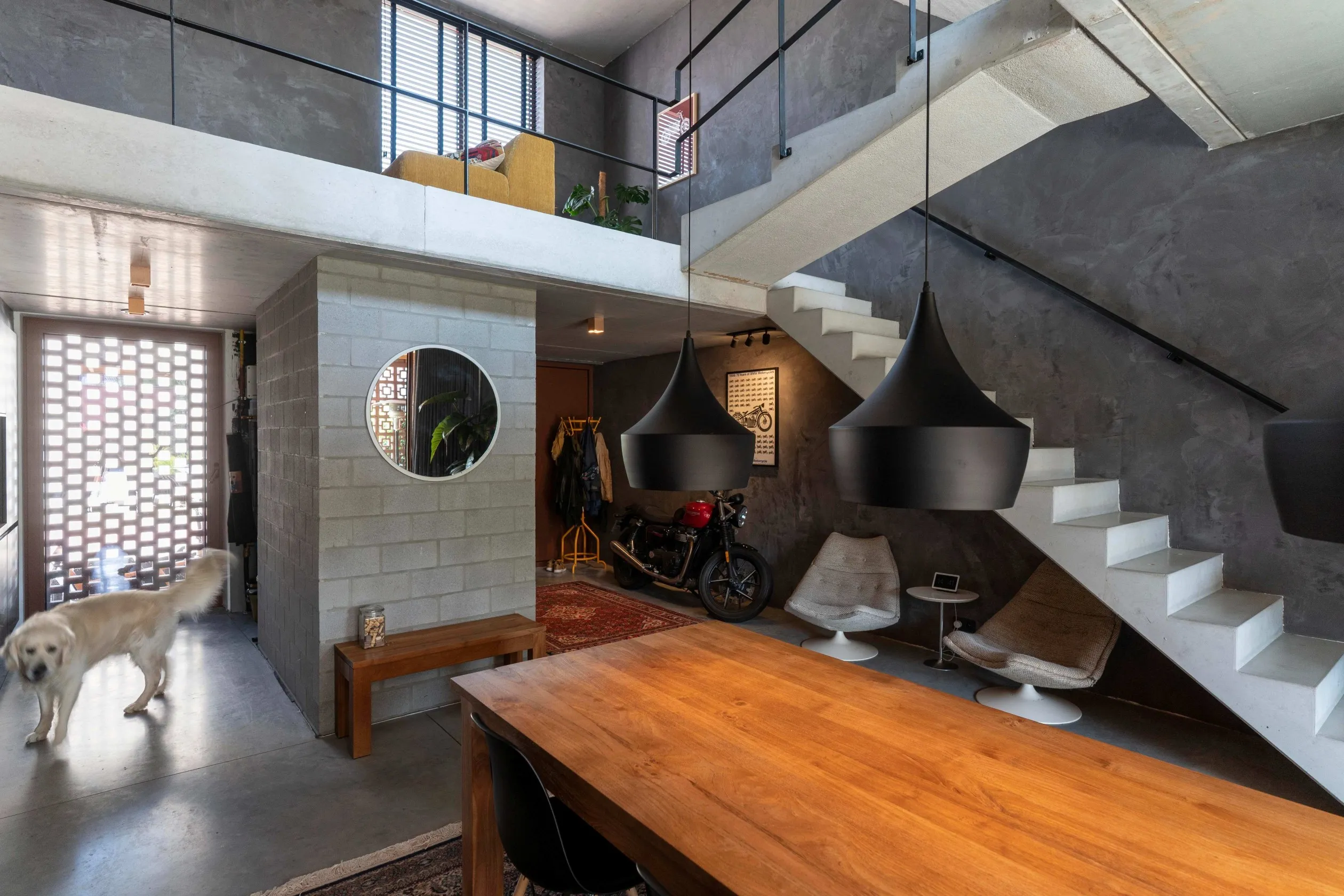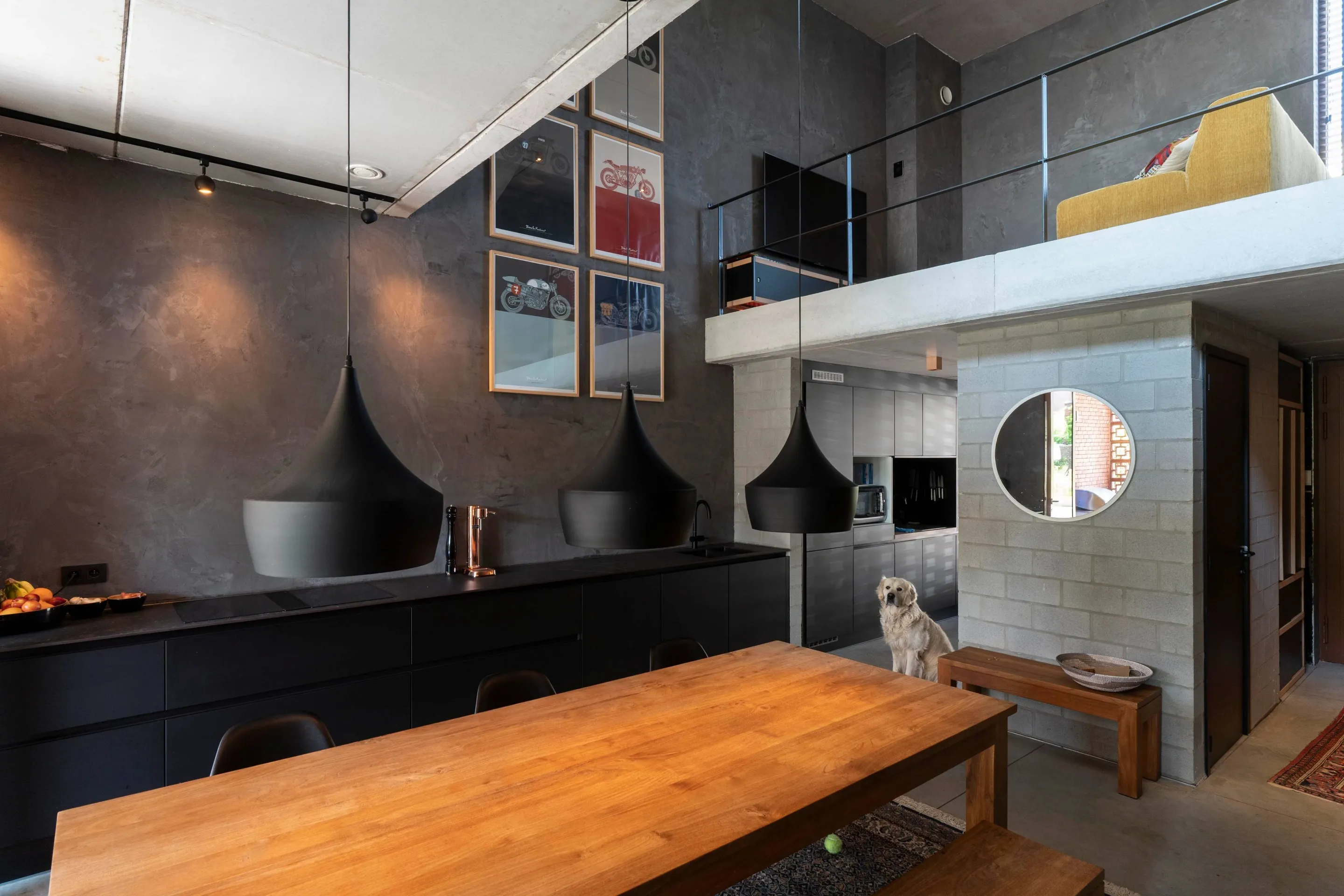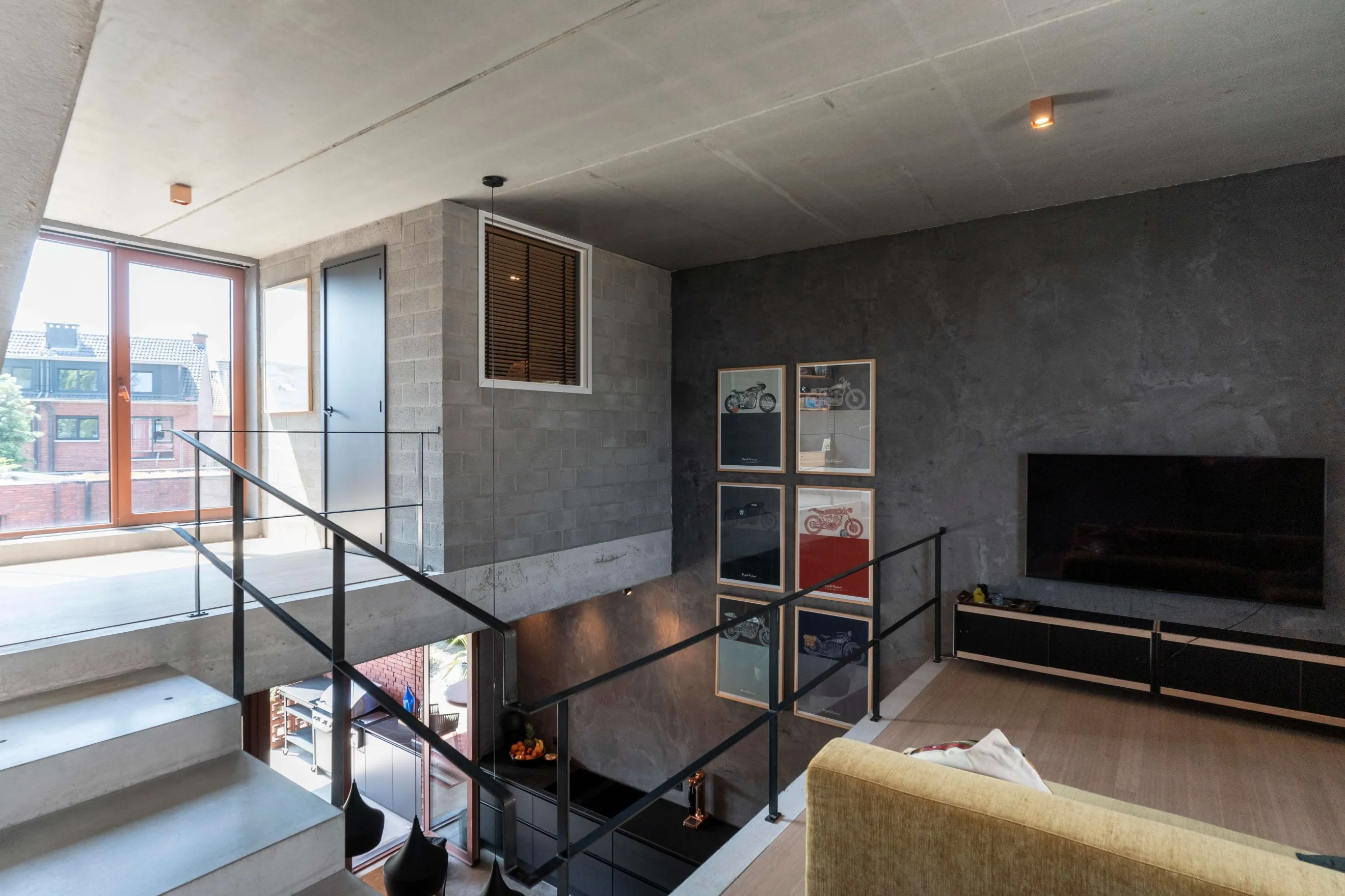 De opdrachtgever had de uitgesproken wens om binnenin met grijs gestucte wanden te werken, wat het ontwerp in de richting van zichtbeton leidde. De esthetische kwaliteiten van deze materialen worden volledig benut, waardoor verdere afwerking overbodig is. Het eindresultaat is een woning met een sterke eigen identiteit die iets vertelt over de eigenaar. Dit aspect vinden wij belangrijker dan het volgen van de persoonlijke voorkeur of ‘stijl’ van de ontwerper.
