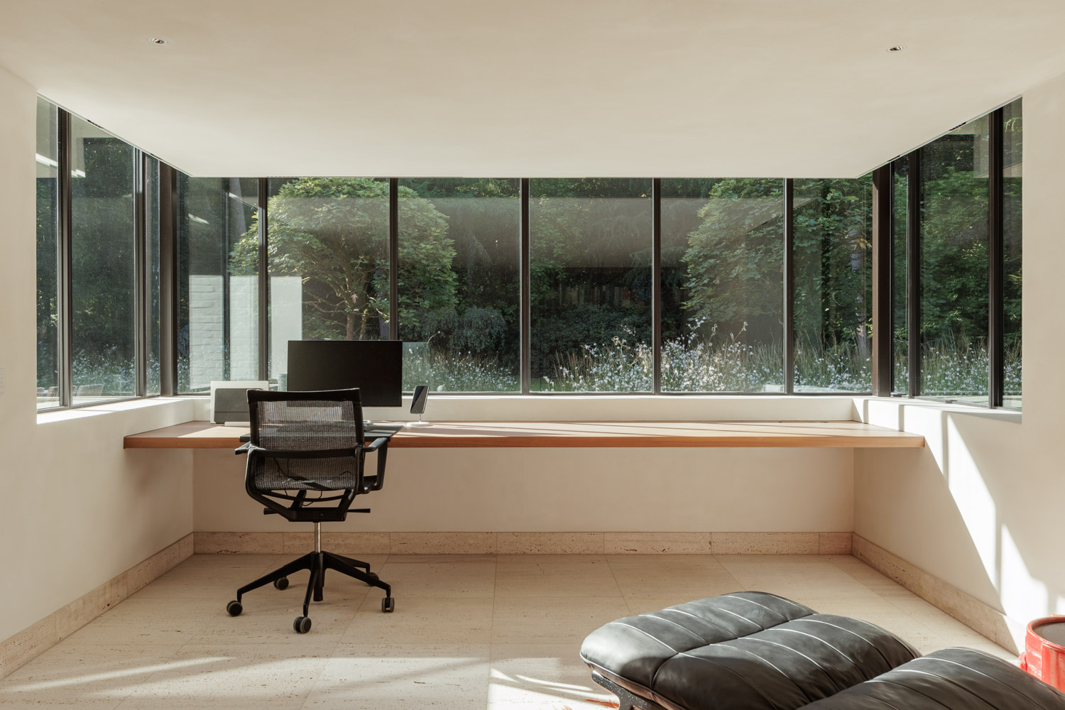 Na een intensief ontwerpproces werd de woning teruggebracht tot haar oorspronkelijke en meest kwalitatieve volume. Er werd voornamelijk geschrapt en intern gereorganiseerd, waarbij alles tot in detail werd uitgetekend.