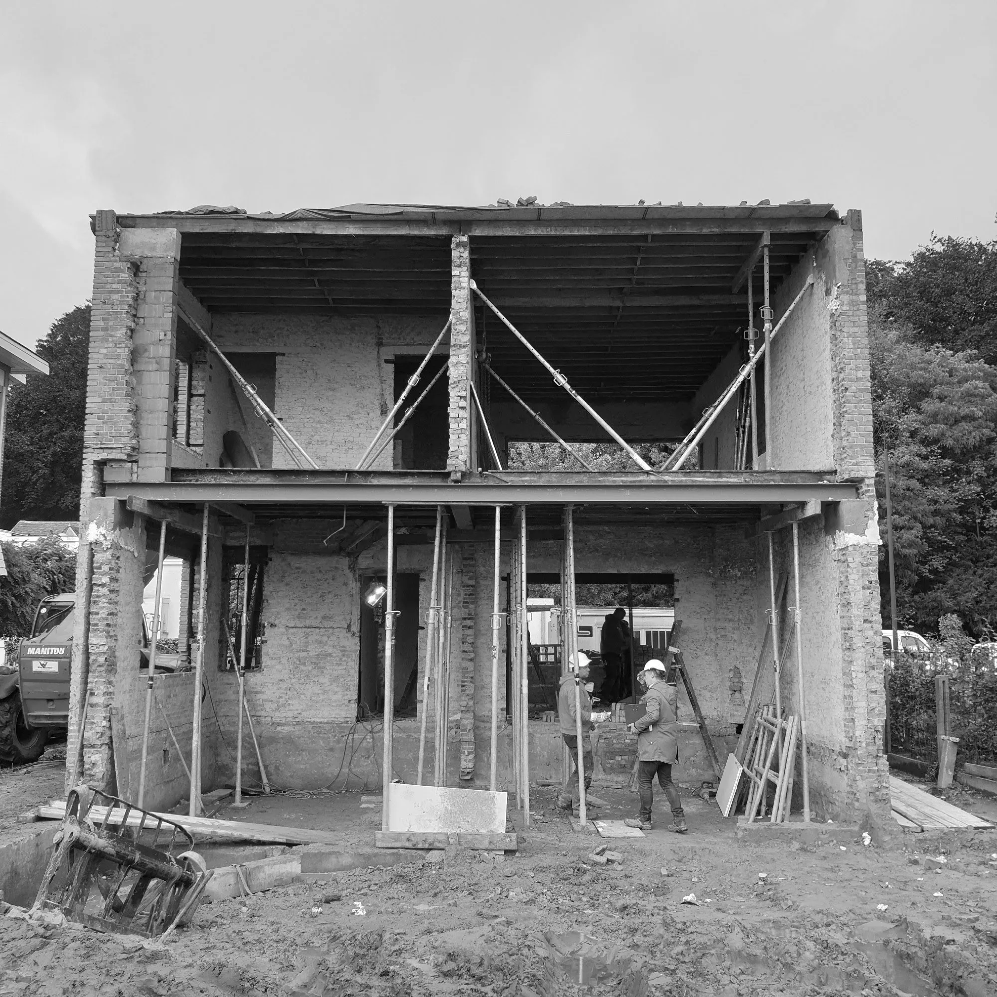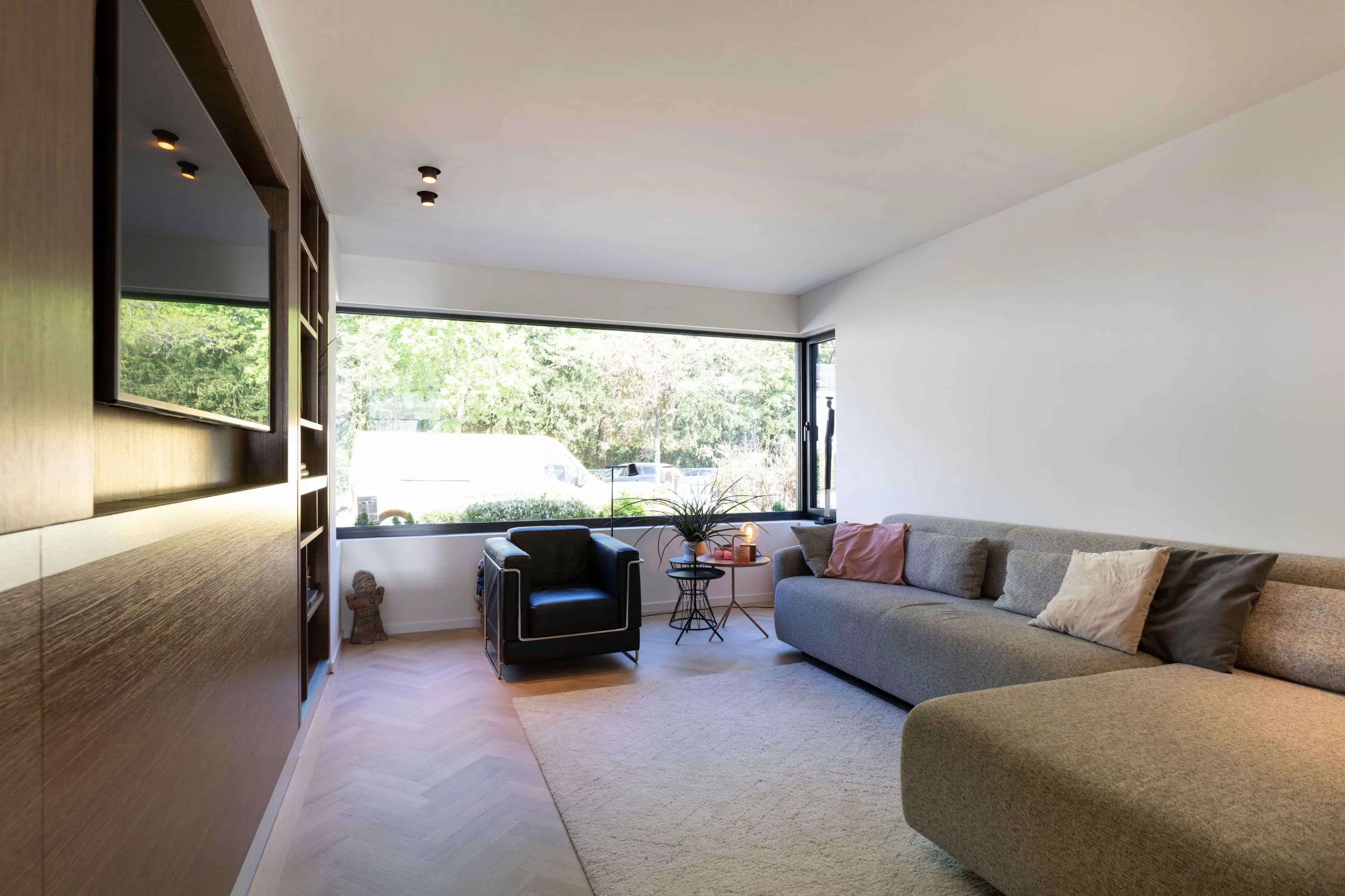 Een interbellum woning verbouwen en uitbreiden zonder de oorspronkelijke architectuur te verloochenen was het uitgangspunt van deze ontwerpopdracht. De gesloten achtergevel wordt afgestemd op onze gewijzigde levensstijl, een aangebouwde veranda volledig weggehaald.