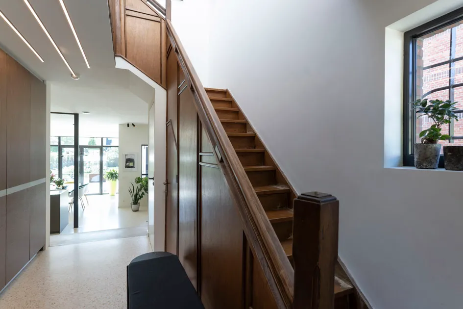 De interne organisatie rond de monumentale traphal bleef behouden en de nieuwe vertrekken sluiten hier naadloos op aan. Vanzelfsprekend werd de gebouwschil na-geïsoleerd en zijn nieuwe technieken opgenomen.