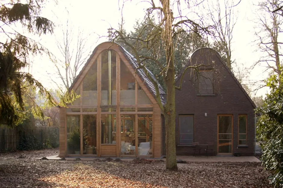 Door 2 lage volumes samen te voegen rond een centrale circulatie-as wordt alle gebouwde ruimte nuttig gebruikt. Er ontstaat een leesbaar geheel: het dagvolume en het nachtvolume. De gevels volgen deze logica en zijn relatief gesloten tot volledig beglaasd. Steile dakvlakken maken de verdieping volwaardig bruikbaar, het afronden van de nok geeft het klassieke profiel een eigenzinnige verschijningsvorm.