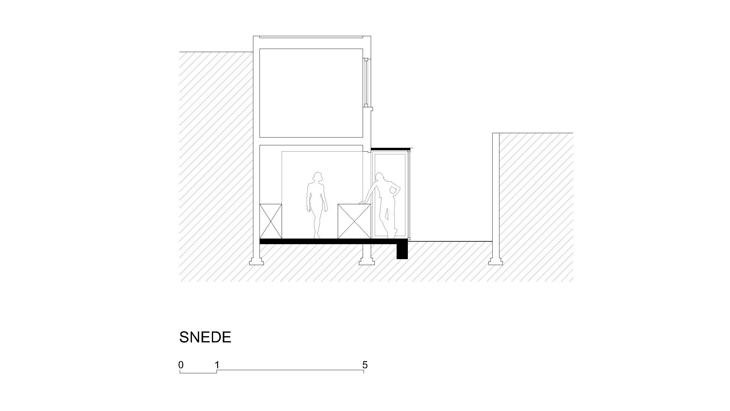 De bestaande openingen in de zijgevel zijn behouden als doorgangen, enkel aan tuinzijde en vijver werden grotere ramen voorzien. Hier situeert zich de nieuwe eetruimte die door middel van zitbanken het bestaande pasverschil naar de tuin maximaal uitspeelt.