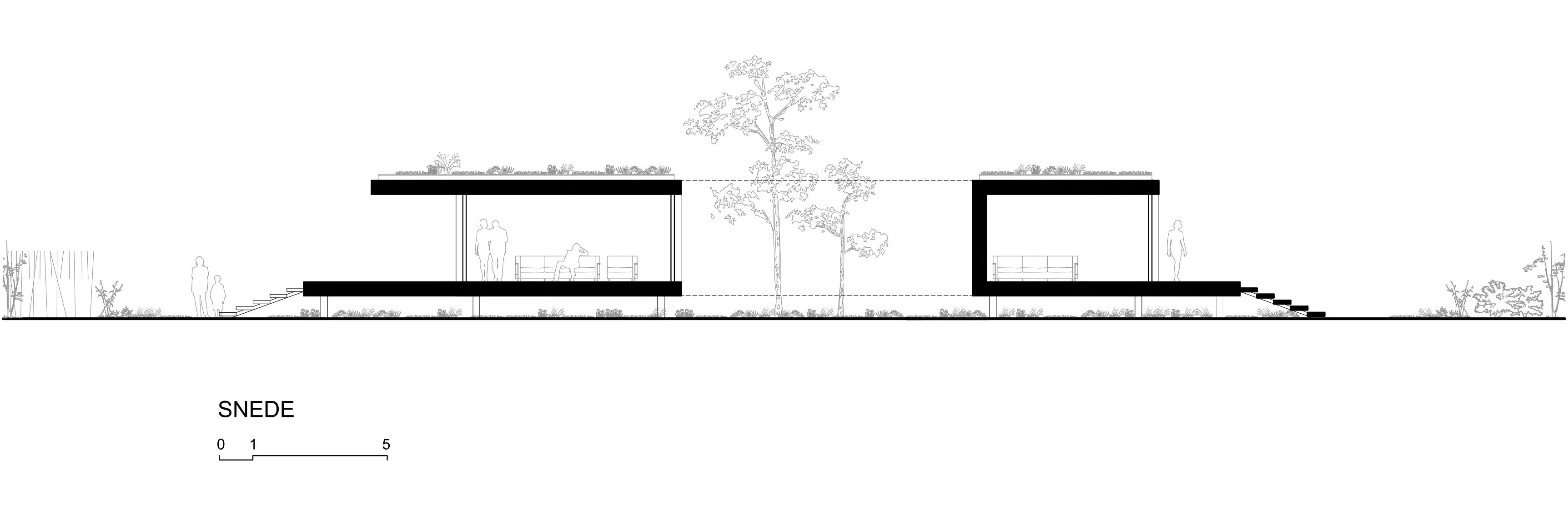 Bijzondere aandacht wordt besteed aan een eerlijke duurzaamheid van de gebruikte materialen doch met luxueuze uitstraling. Voor de dragende constructie wordt gebruik gemaakt van staal en CLT-panelen (Cross Laminated Timber), voor de isolatie van hout- of minerale wol, voor het buitenschrijnwerk van aluminium en glas en voor de gevelafwerking wordt een houten bekleding toegepast.