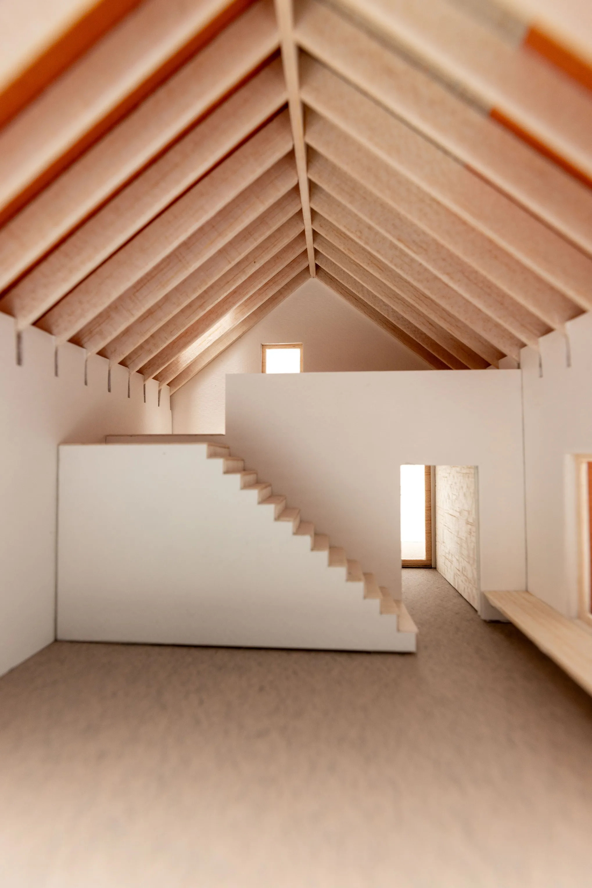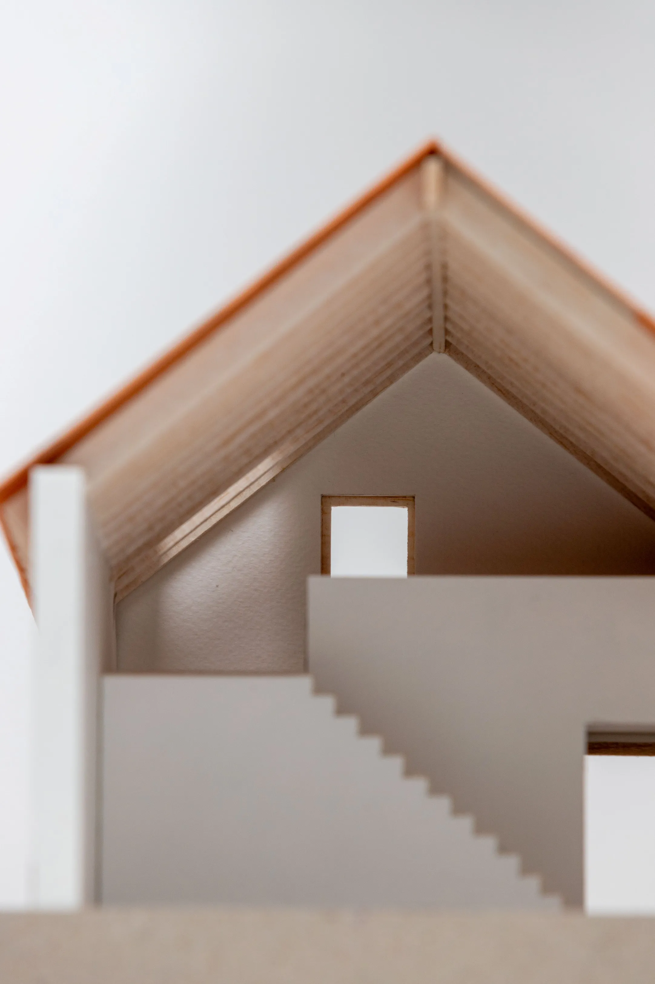 Binnenin wordt het wonen rond een open haard opengewerkt tot in de nok, met duplexen die ruimte geven aan sport en ontspanning. De ouders krijgen een nachtzone met dressing en-suite badkamer op het gelijkvloers, de kinderen hun verdieping onder het hellend dak.